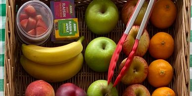 Apples, Bananas, Satsumas, Pears, Plums, Nectarines, Peaches, Melon,Watermelon, Raisins, Apricots, Mango & Apple